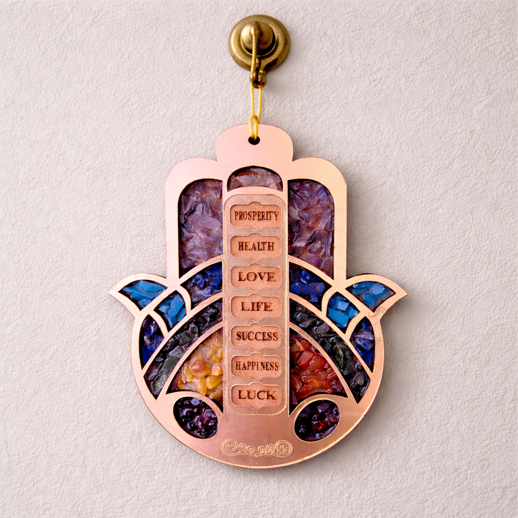 Multi-Stone Décor Hamsa Hand Wall / Car Hanger with Seven Chakra Stones